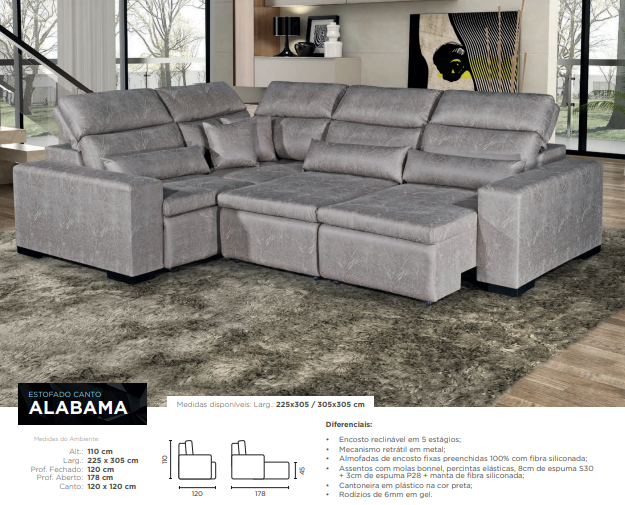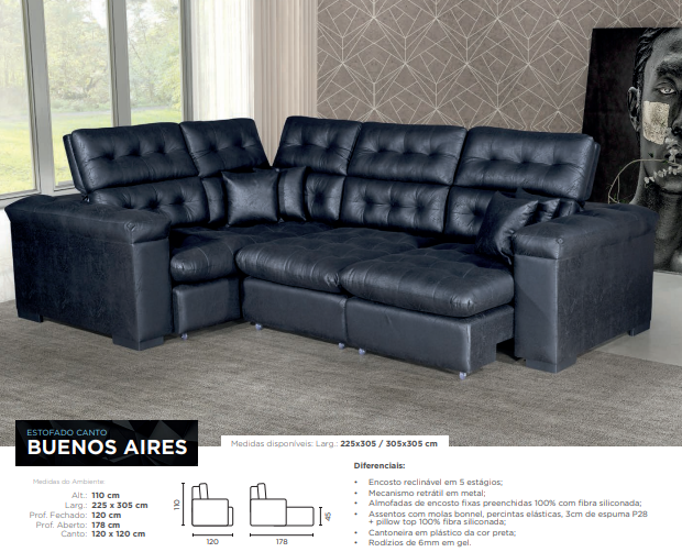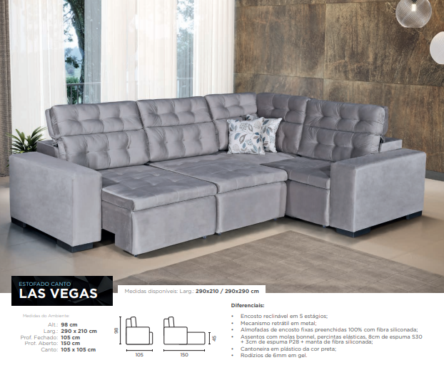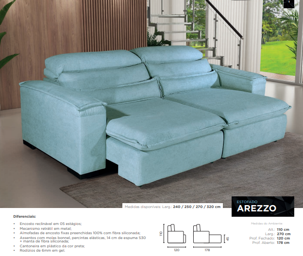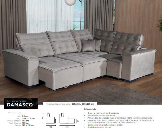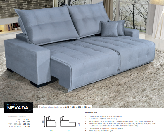 RETRATIL, RECLINAVEL, COM RODINHAS DE SILICONE E 3 ANOS DE GARANTIA.